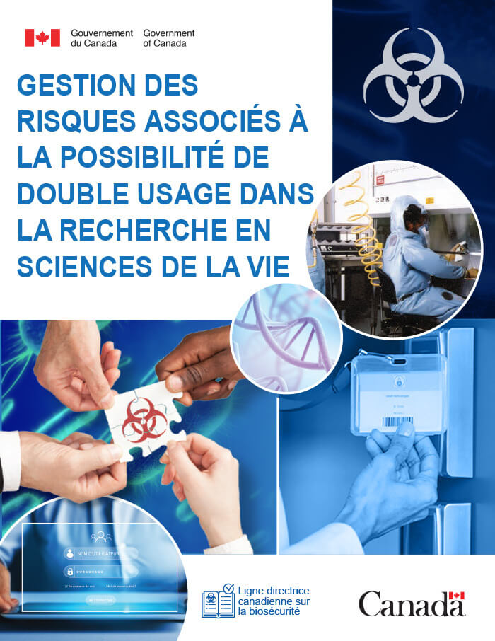 La ligne directrice Gestion des risques associés à la possibilité de double usage dans la recherche en sciences de la vie a été élaborée par l'ASPC et l'ACIA dans le cadre d'une série de publications électroniques qui portent sur les concepts de biosécurité et de biosûreté abordés dans la Norme canadienne sur la biosécurité, troisième édition (NCB). La présente ligne directrice fournit des renseignements et des considérations sur la manière d'évaluer la possibilité de double usage dans la recherche en sciences de la vie impliquant des agents pathogènes, des toxines ou d'autres matières biologiques, et sur la manière de gérer les risques associés.